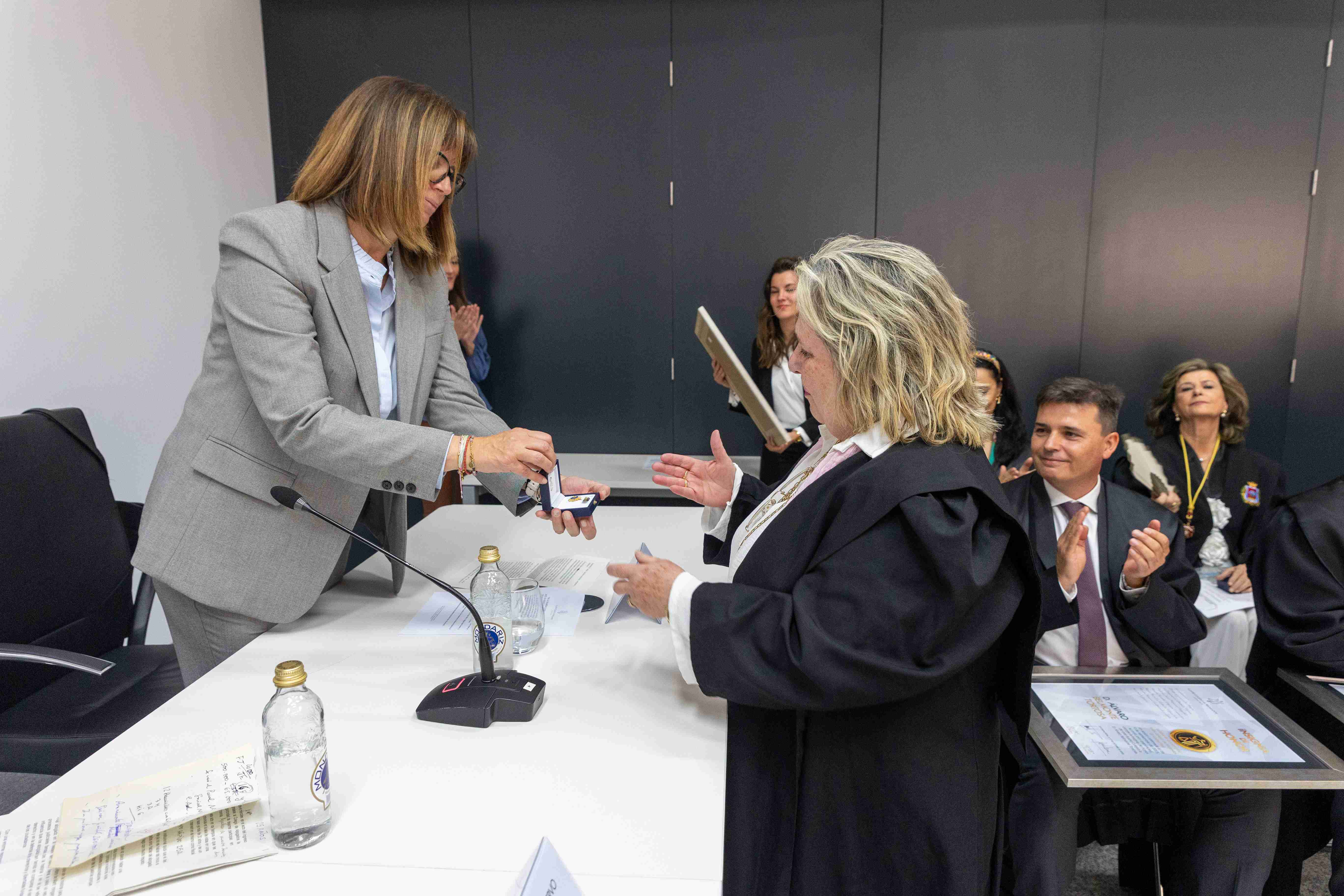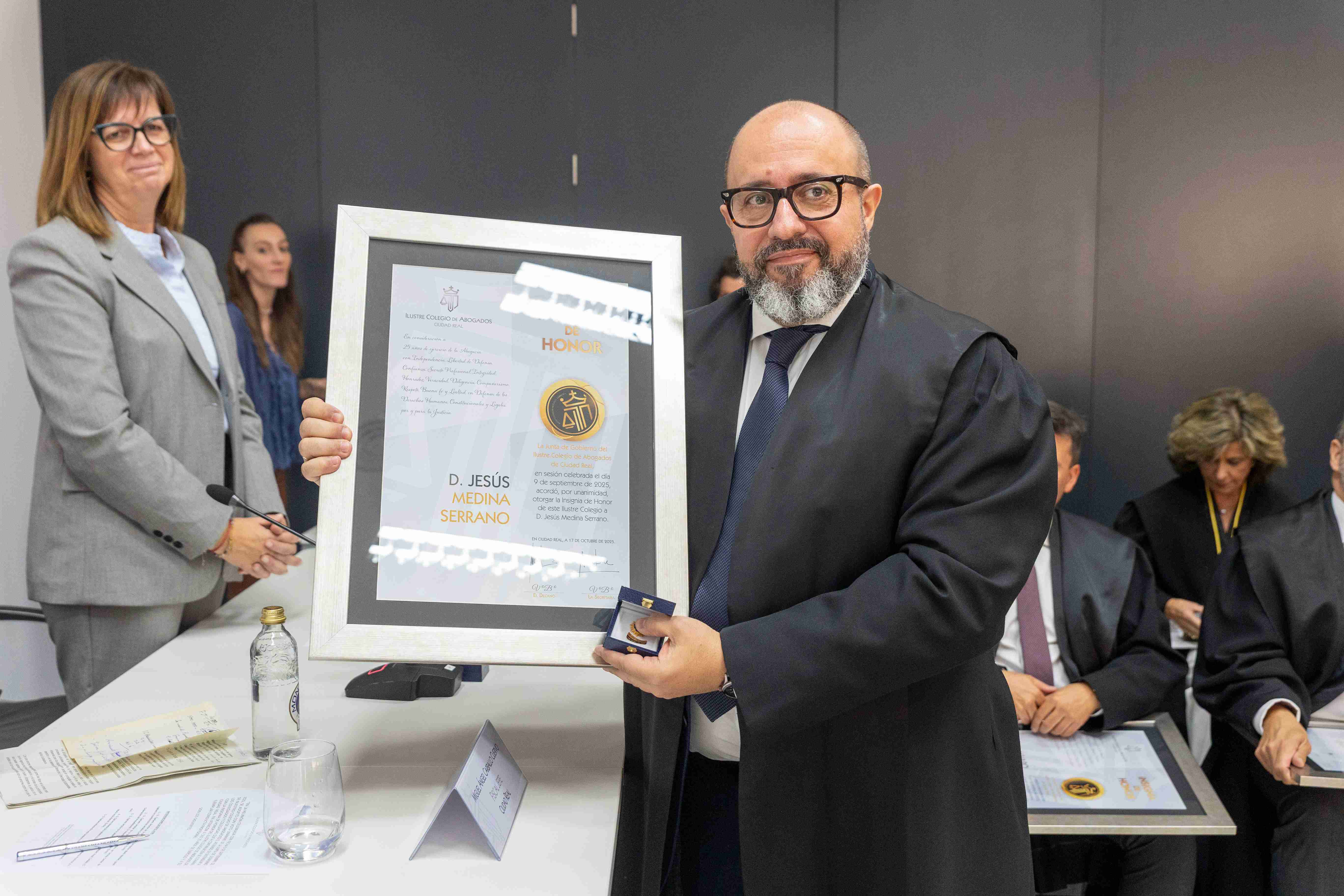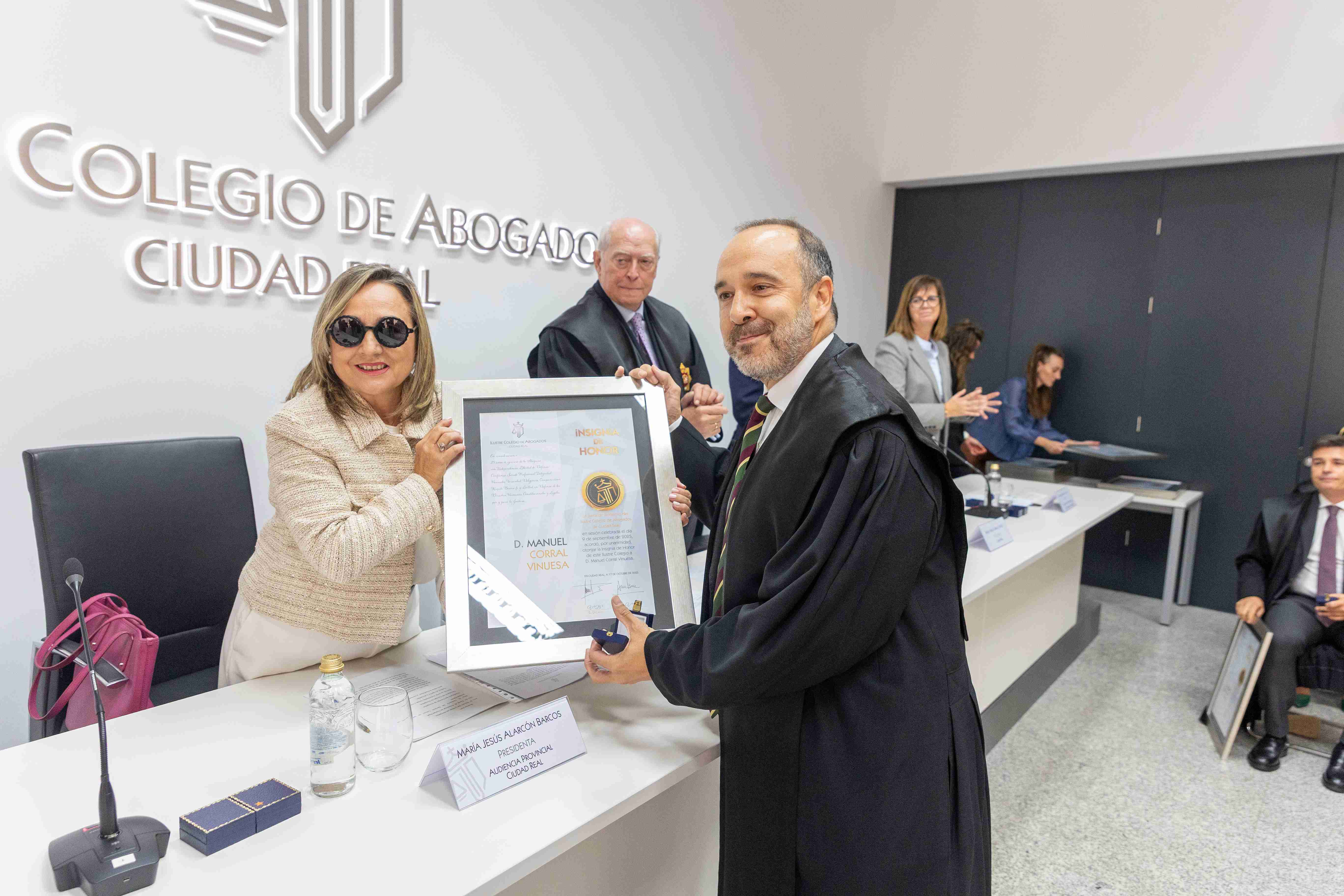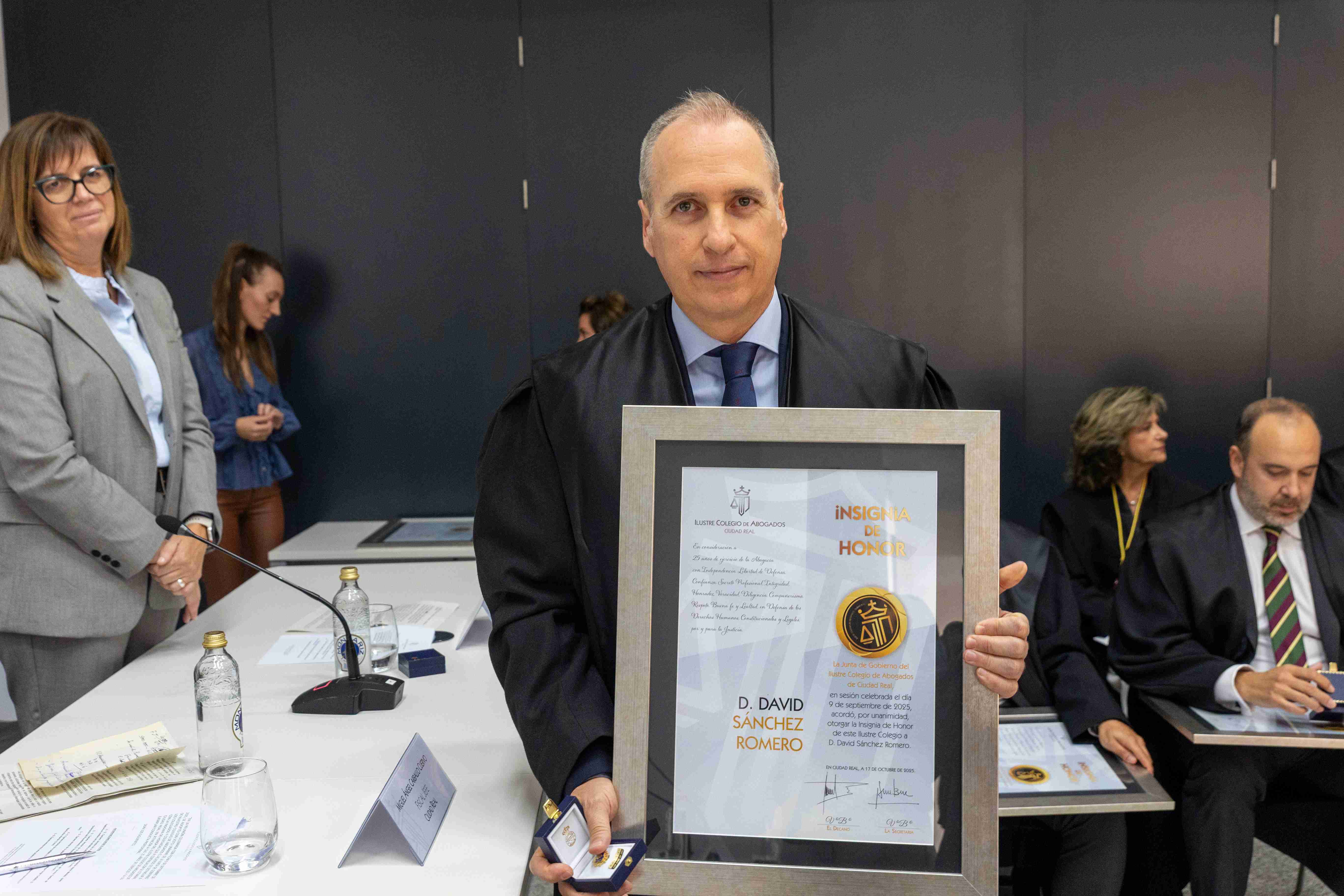 El Acto Institucional tuvo lugar en el salón de actos de la sede del Colegio, también el viernes 17 de octubre. En el mismo, se procederá a la entrega de la Insignia de Honor del Colegio a los compañeros y compañeras que en 2025 cumplen 25 años de ejercicio profesional. El acto estuvo presidido por el Decano, Cipriano Arteche; que estuvo acompañado en la mesa de presidencia por María Jesús Alarcón, Presidenta de la Audiencia Provincial; Miguel Ángel Carballo, Fiscal Jefe de Ciudad Real; Ascensión Prieto, Directora de Servicio Común del Procedimiento; y Diana Moyano, Secretaria del Ilustre Colegio de Abogados de Ciudad Real.