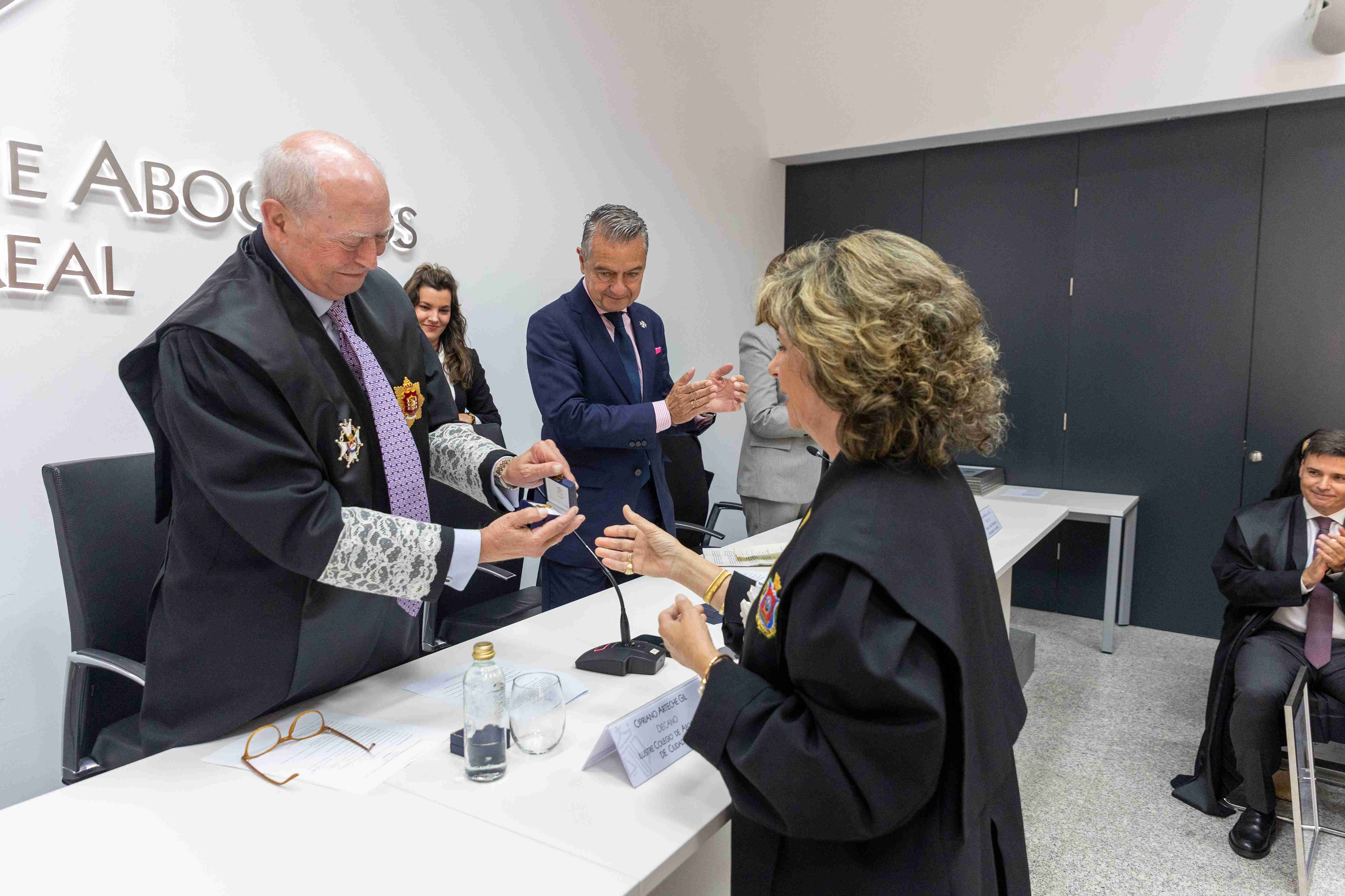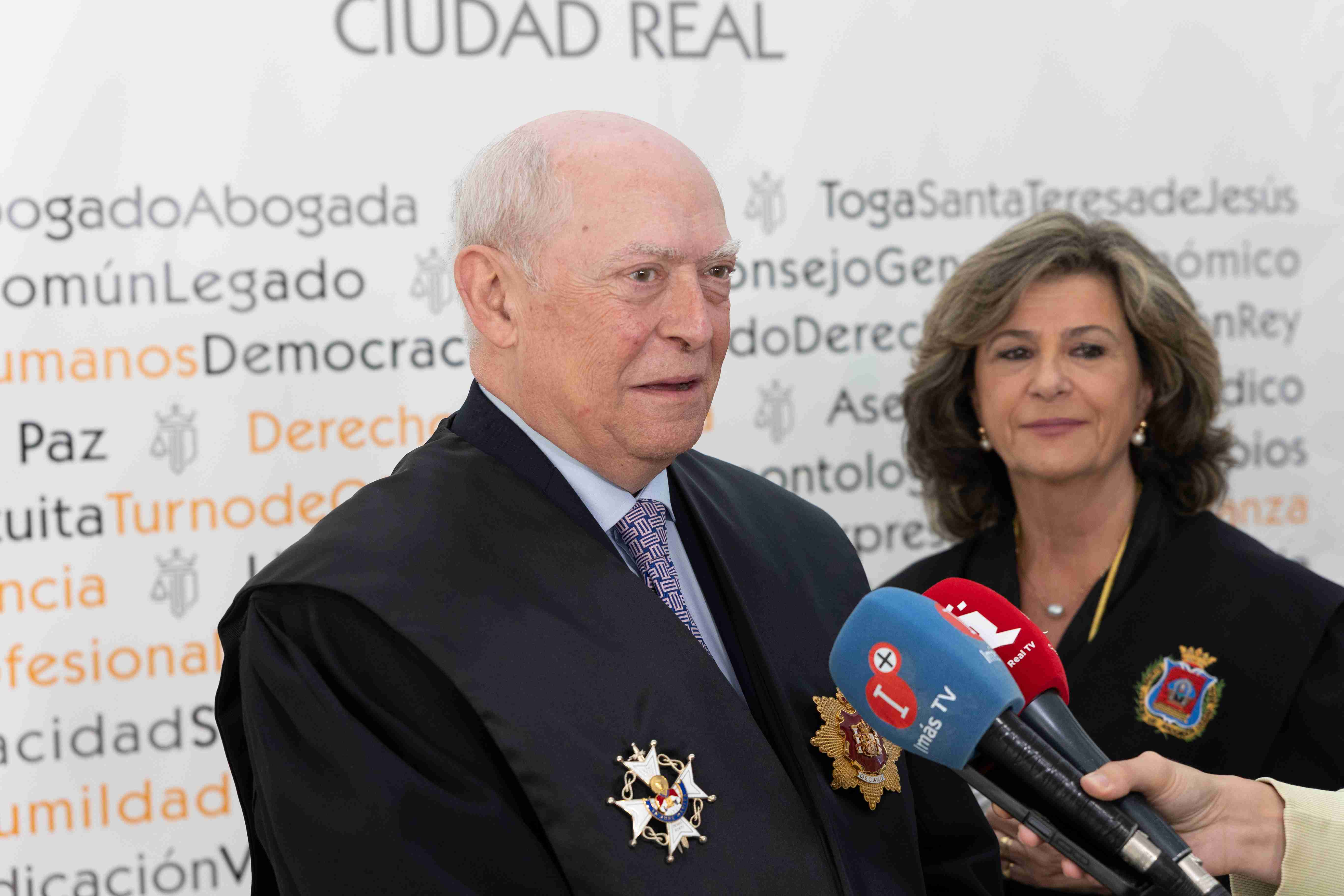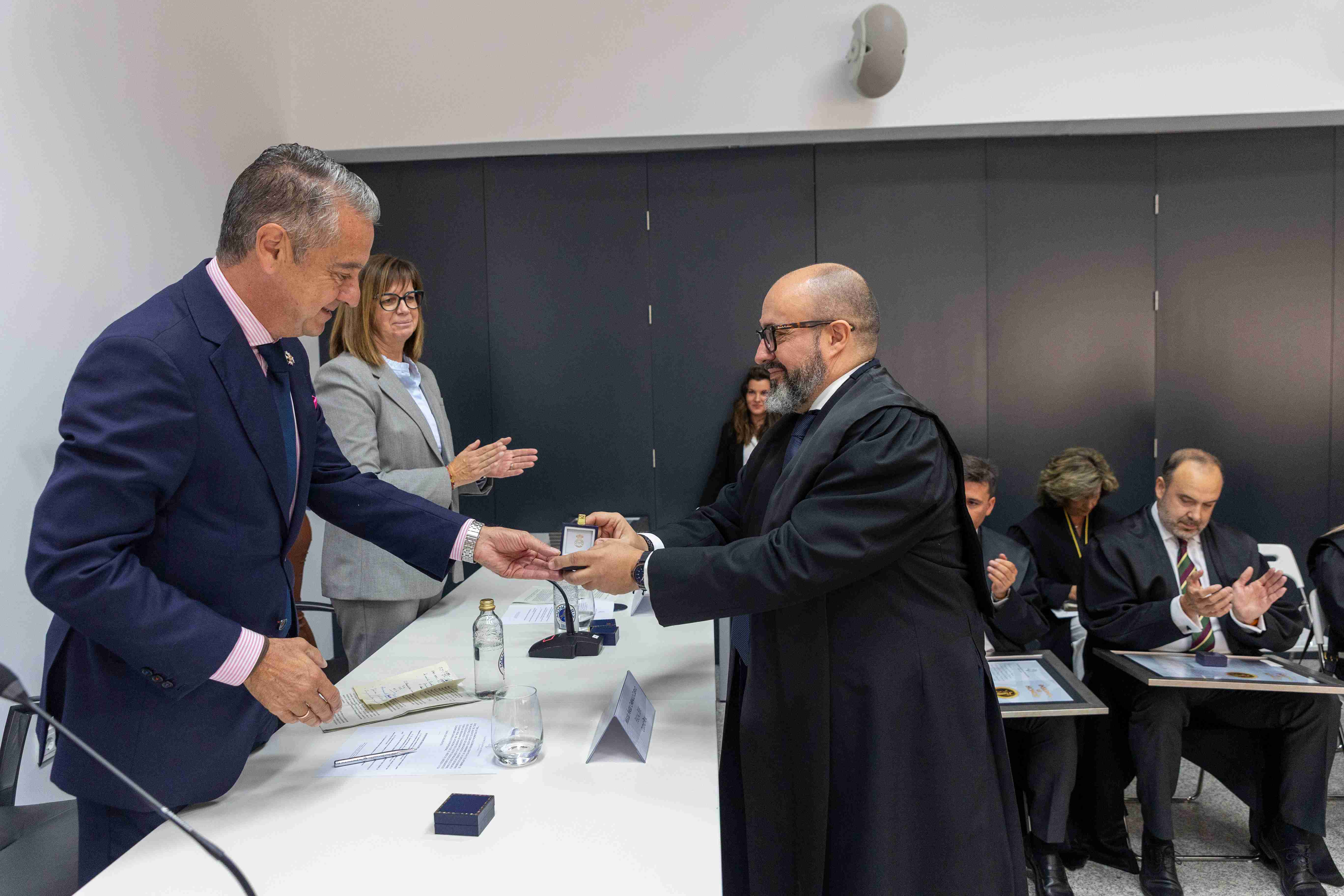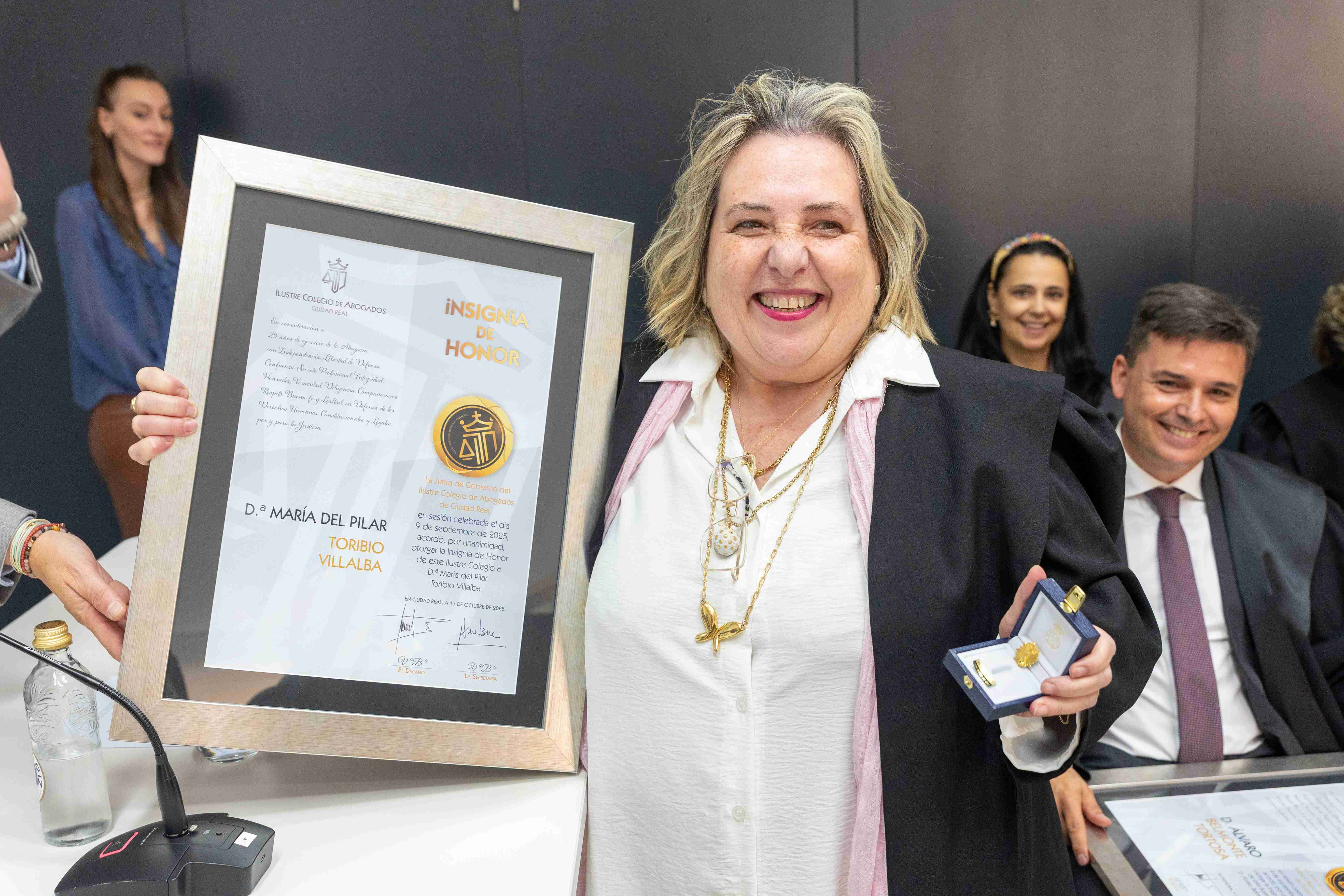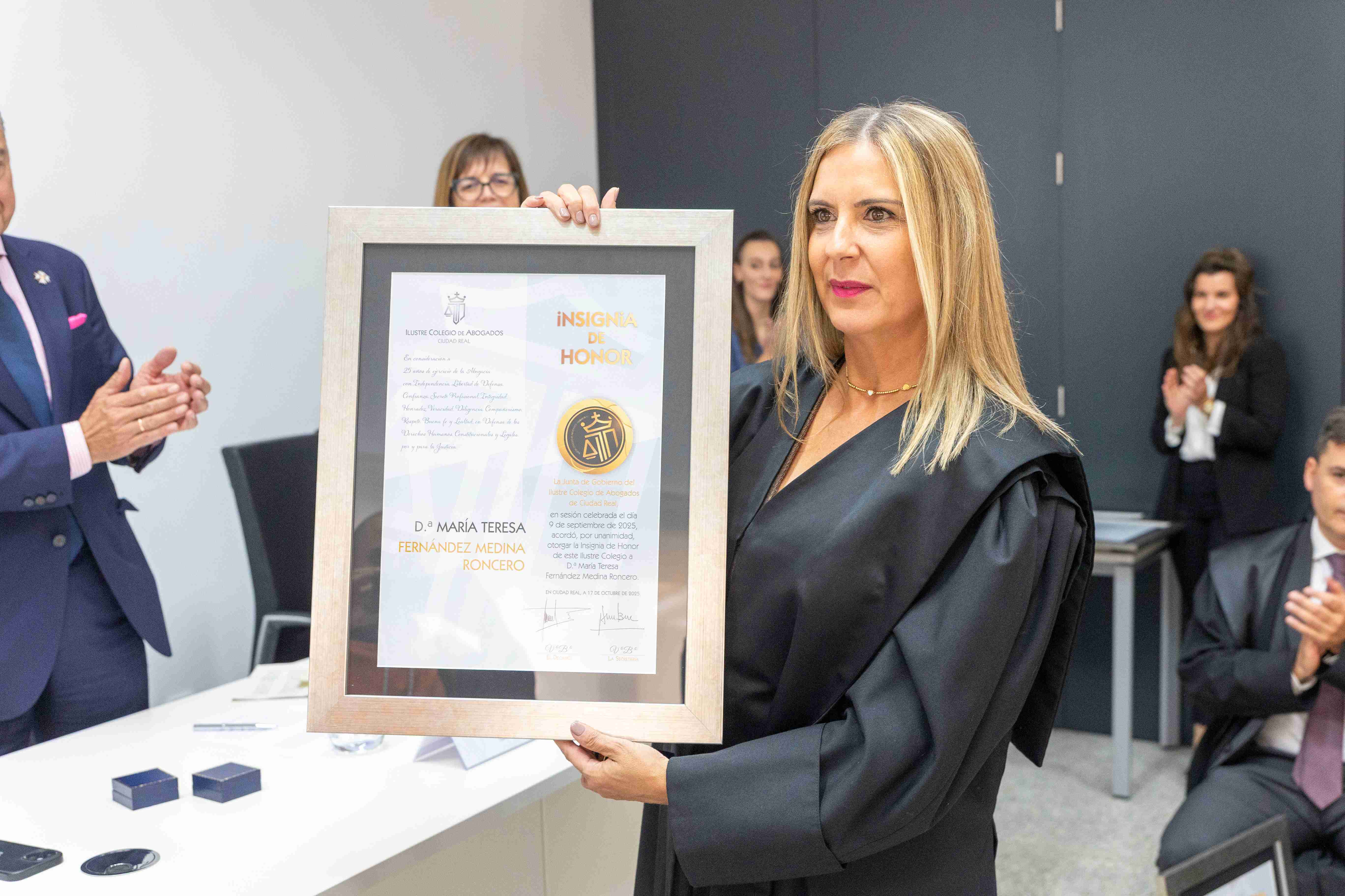 El Acto Institucional tuvo lugar en el salón de actos de la sede del Colegio, también el viernes 17 de octubre. En el mismo, se procederá a la entrega de la Insignia de Honor del Colegio a los compañeros y compañeras que en 2025 cumplen 25 años de ejercicio profesional. El acto estuvo presidido por el Decano, Cipriano Arteche; que estuvo acompañado en la mesa de presidencia por María Jesús Alarcón, Presidenta de la Audiencia Provincial; Miguel Ángel Carballo, Fiscal Jefe de Ciudad Real; Ascensión Prieto, Directora de Servicio Común del Procedimiento; y Diana Moyano, Secretaria del Ilustre Colegio de Abogados de Ciudad Real.